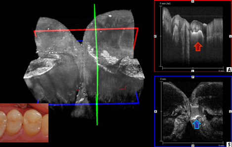 光干渉断層計(OCT)は近赤外光を用い、生体の断層画像を非侵襲的に得ることができます。中でも波長走査型OCT(SS-OCT)は画像深度が深く、画像処理速度も速いことから、う蝕の診断や修復物の適合性の評価など、保存修復領域における有用性が高いと考えられます。